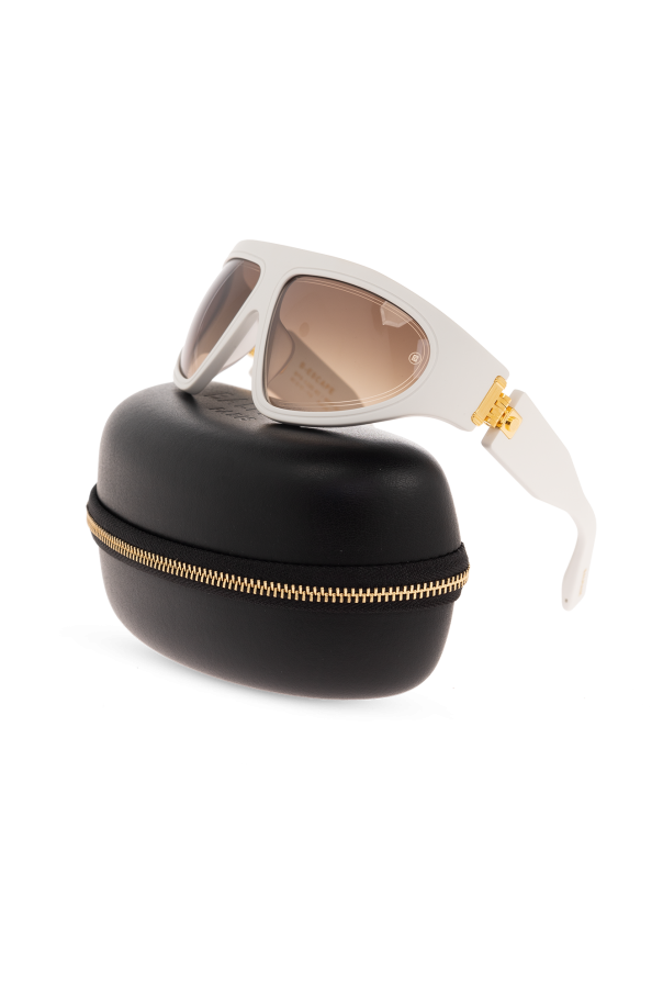 White ‘B-Escape’ sunglasses from Balmain. This model showcases the brand's logo on the sides, gold-tone titanium elements and brown lenses with UV protection (cat.3). Case included.