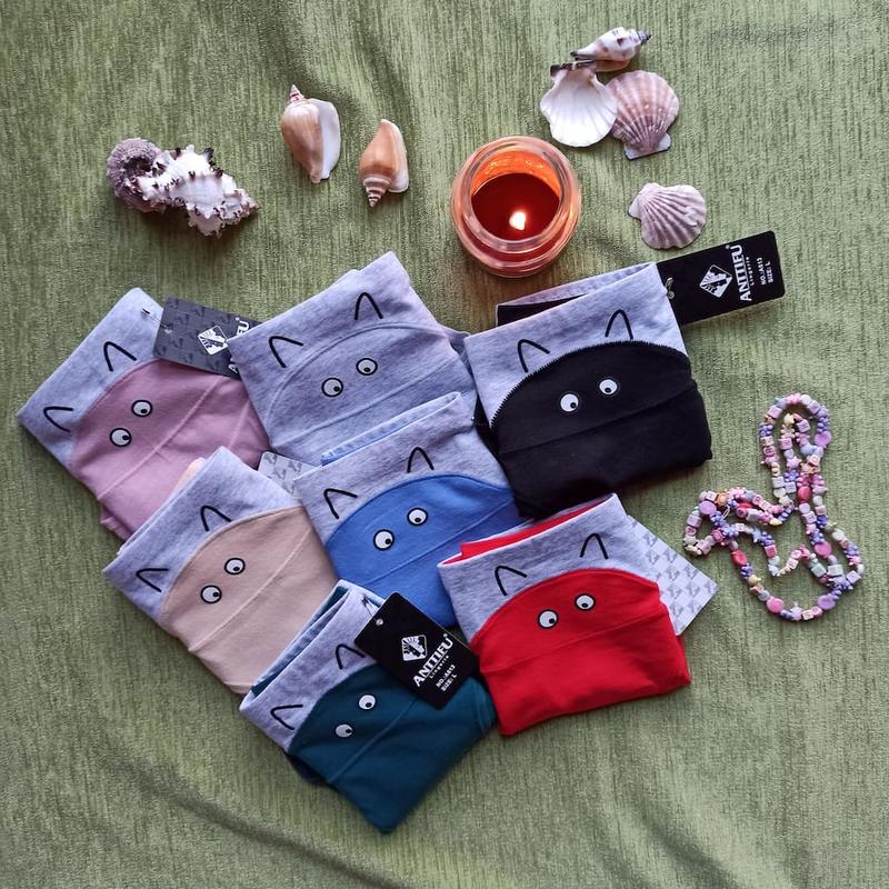 Цвета с котами А613 (с трехугольными ушками): серо-черные, серо-беж, серо-серые, серо-красные, серо-пудровые, серо-голубые, серо-зеленые.