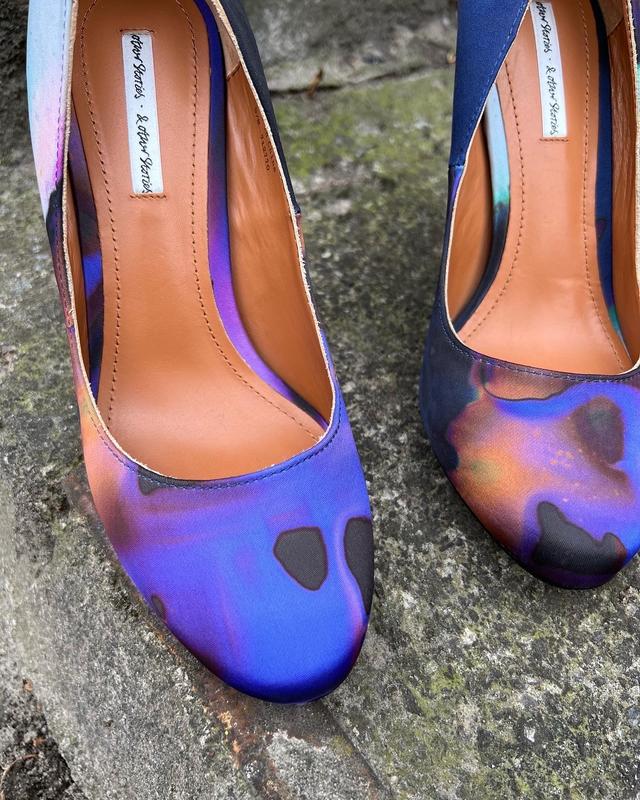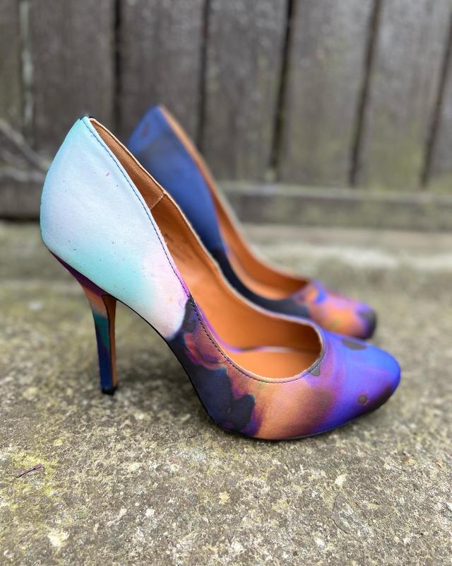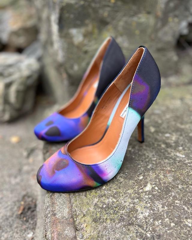 Вишукані витончені туфлі з цупкого текстилю та натуральної шкіри