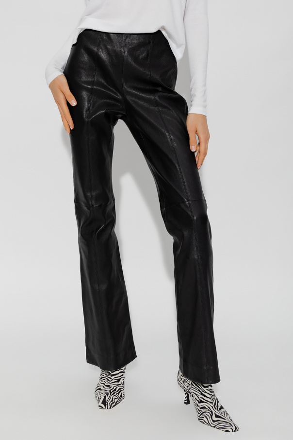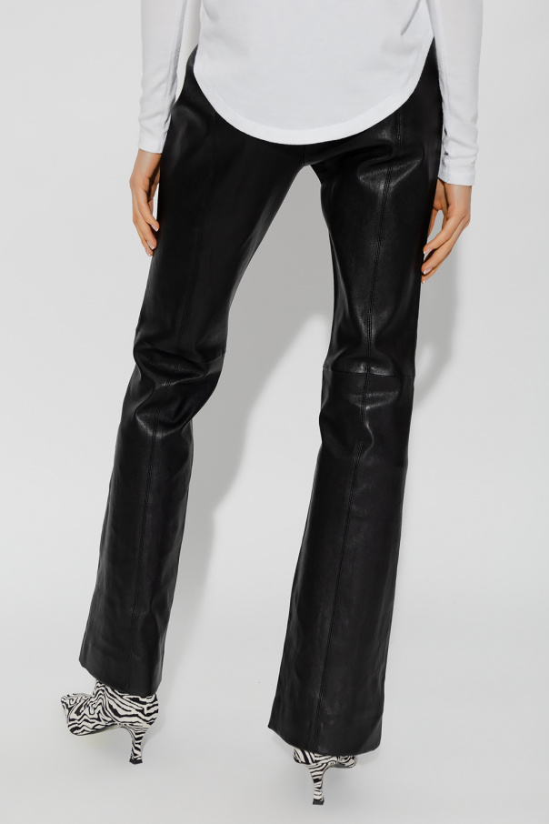 Black trousers from Rag & Bone. Crafted from lamb leather, this flared leg pair features a concealed zip and hook as well as decorative stitching.