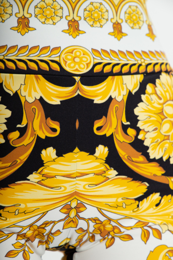 Black, white and gold-tone training leggings from Versace. Embellished with the brand's signature ‘Barocco’ pattern, this style features a cropped fit, high-rise waist and an elasticated waistband.