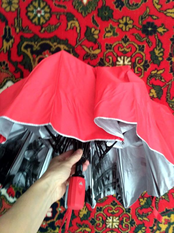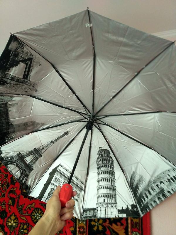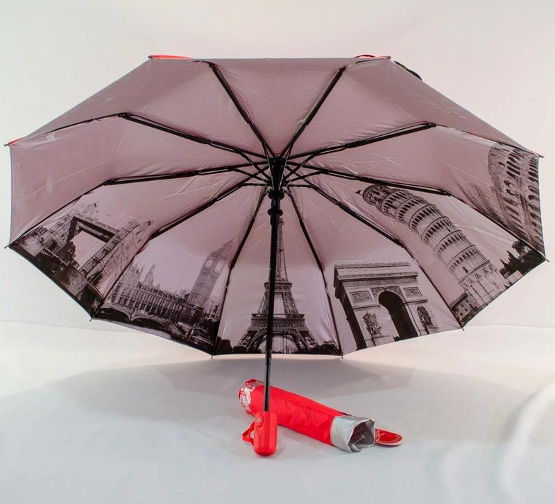 Зонтик обладает оригинальным дизайном, принт нанесен на внутренней стороне купола, по серебристому напылению.