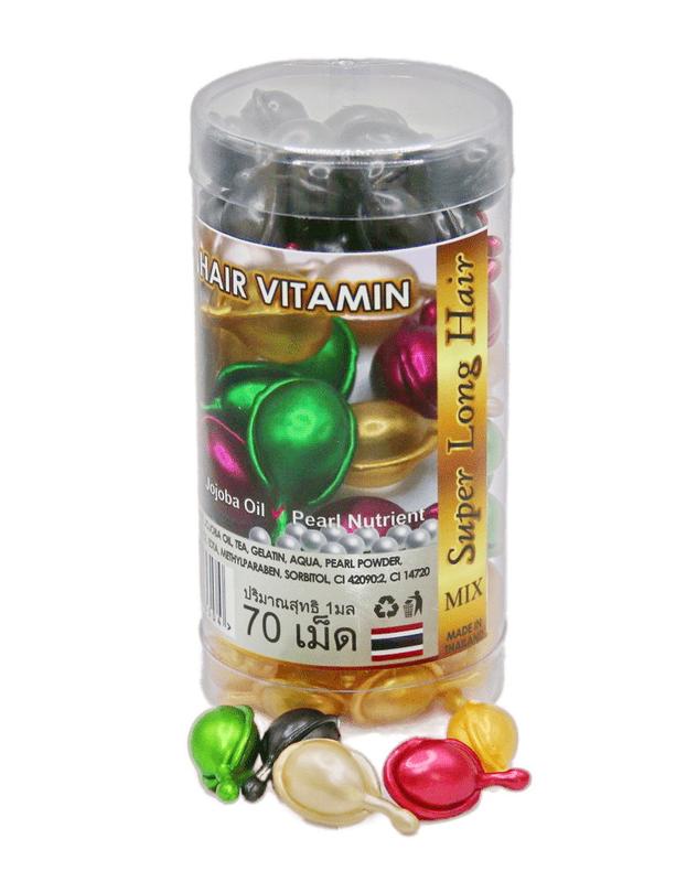 Тайские капсулы для волос A-Trainer MIX Super Long Hair с витамином Е и маслом жожоба 70 шт в упаковке, 5 цветов: