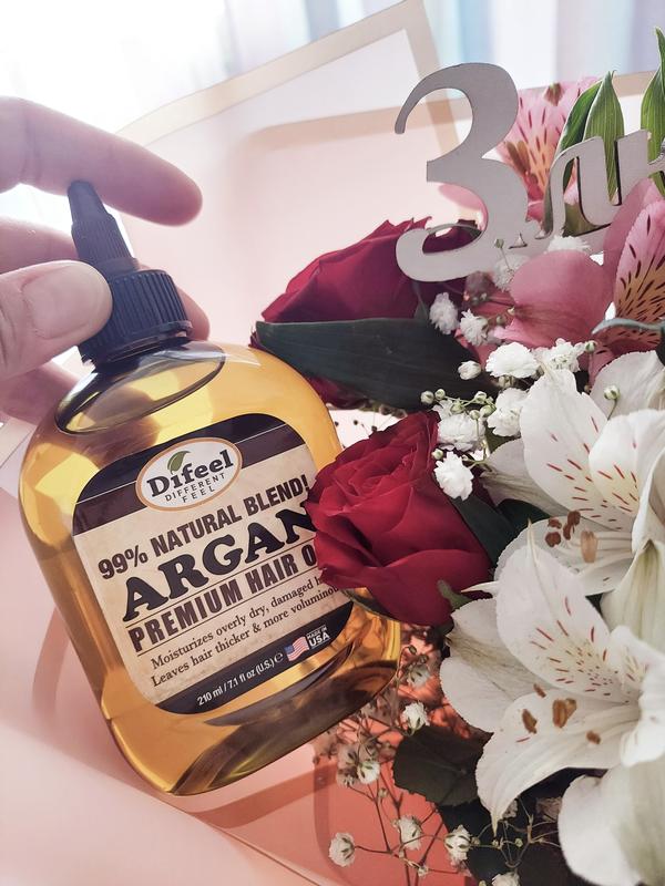 Аргановое масло проникает в волосы, помогает увлажнить каждый слой пряди волос. Способствует восстановлению. Ваши волосы действительно будут выглядеть более здоровыми, шелковистыми и необычайно блестящими. Аргановое масло богато витамином Е и незаменимыми жирными кислотами. Используют для сухих и пористых волос.