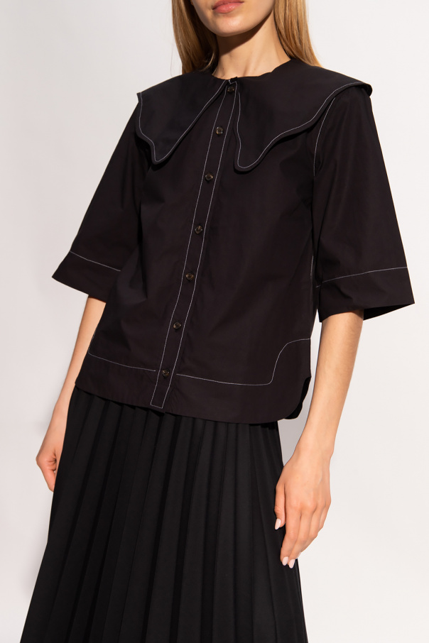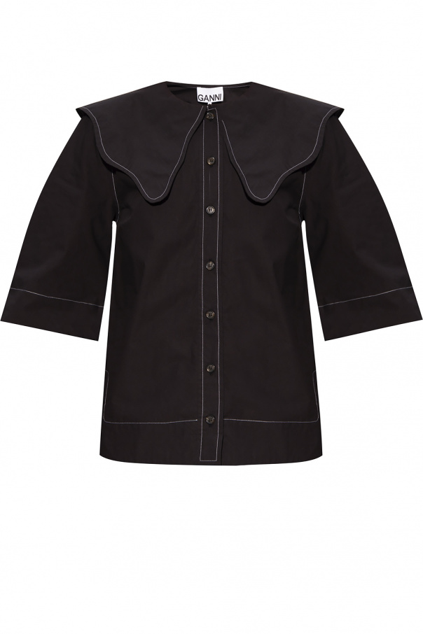 Black shirt from Ganni. Made of organic cotton, this garment features button fastenings, a decorative collar and wide elbow-length sleeves.