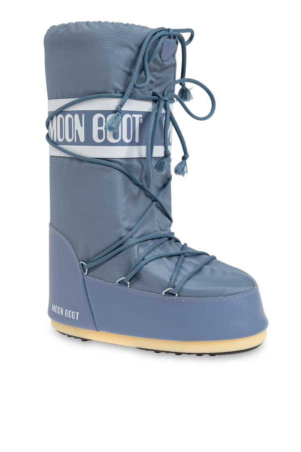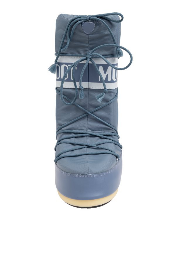 Introducing the Icon Nylon Snow Boot from our exclusive collection. Crafted with meticulous attention to detail, this snow boot exemplifies both durability and sophisticated style. The Icon Nylon boasts a high, cylindrical shape, extending above the ankle for optimal protection. Its design is characterized by simplicity and functionality, featuring clean lines and extensive lacing for a secure fit. Constructed from premium nylon, the boot promises resilience against harsh weather conditions. The exterior is adorned with a prominent white "MOON BOOT" inscription on a broad horizontal band at the top, complemented by a smaller "MOON BOOT" logo near the heel. The lacing system, covering the entire front, ensures enhanced stability and a personalized fit. The dominant blue hue, accentuated by white details, exudes a striking yet elegant look. The light-colored sole, likely made of rubber, offers excellent traction on snow and ice, making it an ideal choice for winter adventures. Why choose this product? Timeless design by Giancarlo Zanatta, renowned since the '70s Combines iconic style with practical functionality Crafted from durable nylon for weather resistance Extensive lacing system for a custom fit Excellent grip with light-colored rubber sole
