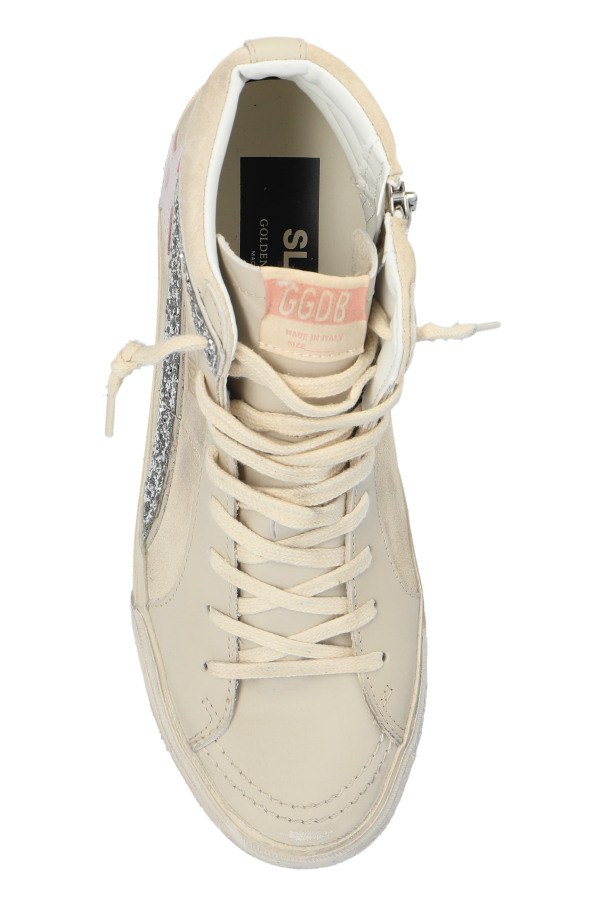 Introducing the ‘Slide Classic’ Ankle Sport Shoes by the illustrious Golden Goose, a testament to the fusion of vintage charisma and contemporary elegance. Crafted with meticulous attention to detail, these high-top sneakers boast a dominant beige hue, enriched with a gracefully aged appearance that adds a touch of sophistication to their classic design. The exterior is adorned with the signature star emblem, contrasting vividly against the shoe’s understated palette, while a shimmering silver sequined panel on the outer side infuses an air of exclusivity and glamour. The front showcases the designer’s golden logo, subtly placed above the sole, enhancing the shoe’s luxurious appeal. The sole itself is a work of art, made from a slightly translucent rubber that lends an illusion of lightness and avant-garde style. Comfort is paramount, with classic lacing and a reinforced tongue ensuring a snug fit. Practicality is also considered, featuring a handy pull tab at the rear for easy wear and a side zipper for effortless on and off. The ‘Slide Classic’ is a blend of premium materials, including leather and high-quality fabric for both the inner and outer layers, culminating in a shoe that is not only visually captivating but also durable and comfortable. Why Purchase This Product? Elegance and Style: The unique vintage effect and exclusive sequined detailing exude sophistication. Premium Quality Materials: Crafted from superior leather and fabric, ensuring durability and comfort. Designer Appeal: The distinctive Golden Goose branding adds a touch of luxury. Practical Features: Equipped with a side zipper and pull tab for ease of use.