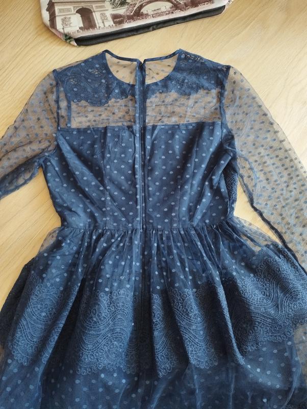 Синє нове нарядне плаття 36-38, кружево підкладка фатін, плюс підклад натуральний робить юбку пишною, дуже вишукано дивиться, на спинці блискавка
