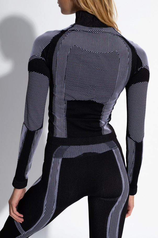 Black and white ‘Sport Active Classic’ top from MISBHV. Crafted from breathable thermo-active fabric with a slim-fitting silhouette. 60% of the yarn is recycled. This style showcases a standing collar, long sleeves, elastic details on the bottom hem and cuffs, exposed stitching and an embroidered logo. This product was made in Poland with the use of 100% energy from solar panels, to reduce negative impact on our environment.