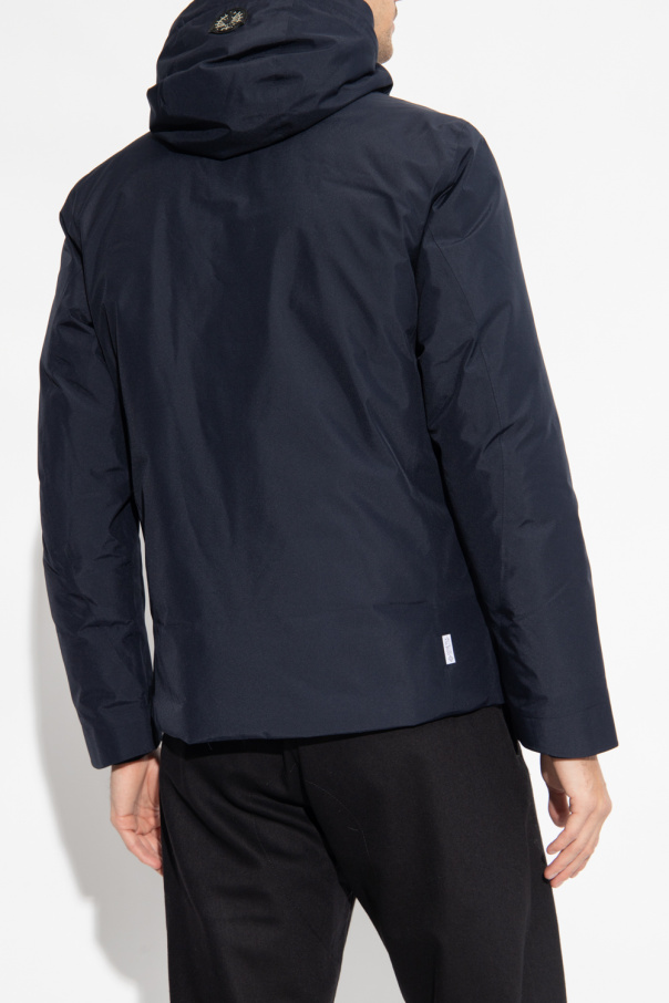 Navy ‘Bertram’ jacket from Save The Duck, the ‘Pro-Tech’ line. Crafted from recycled fabric with a Gore-Tex® membrane, this breathable, wind and water-resistant jacket features synthetic Gore-Tex® down padding, zip fastening, double drawstring hood with a rubber logo patch and two zip pockets. Temperature range: from -10°C to 14°C.