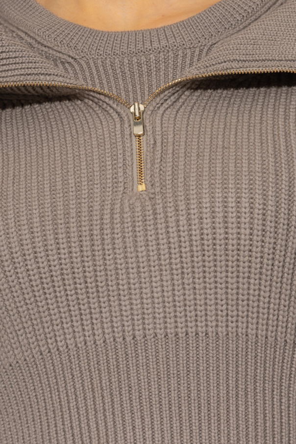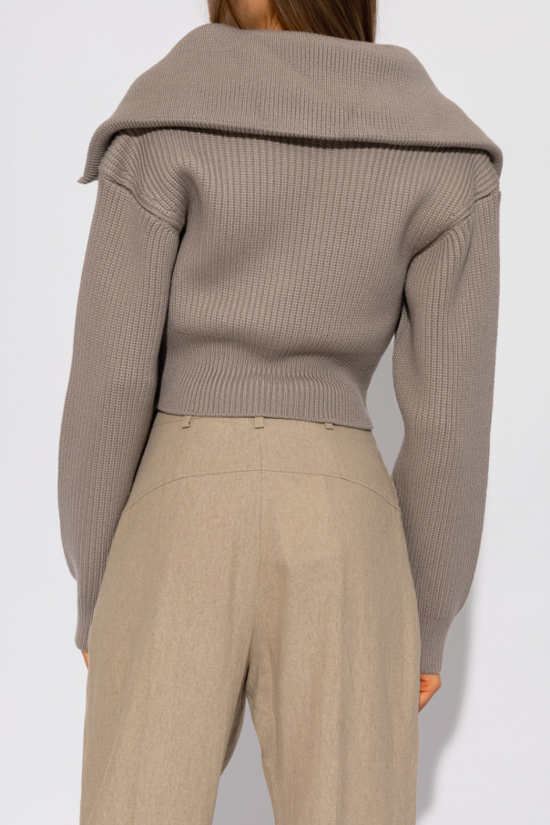 Brown 'Risoul' ribbed sweater from Jacquemus. Made of wool, this garment features a zipped collar and ribbed trims at the hem and cuffs.