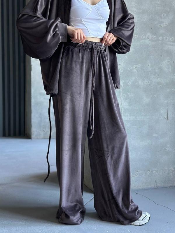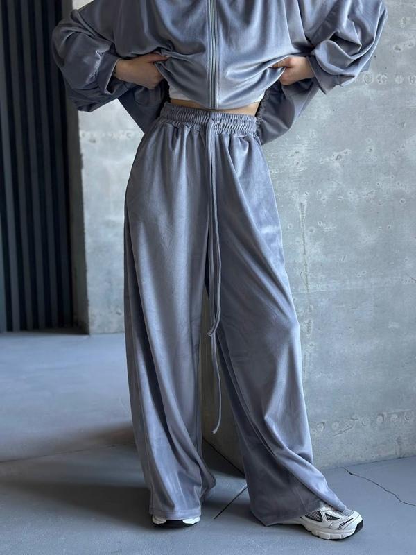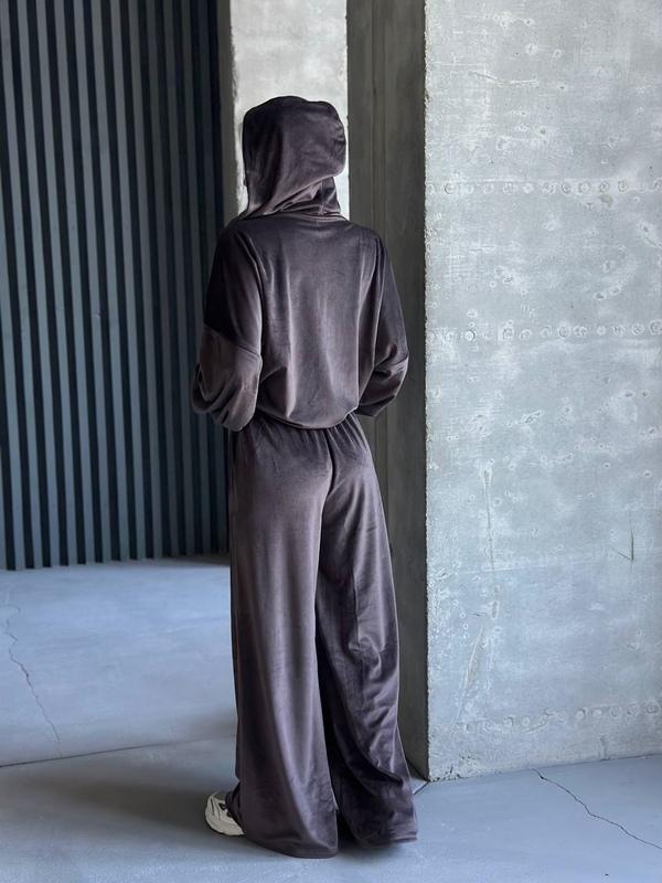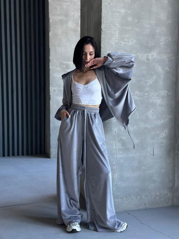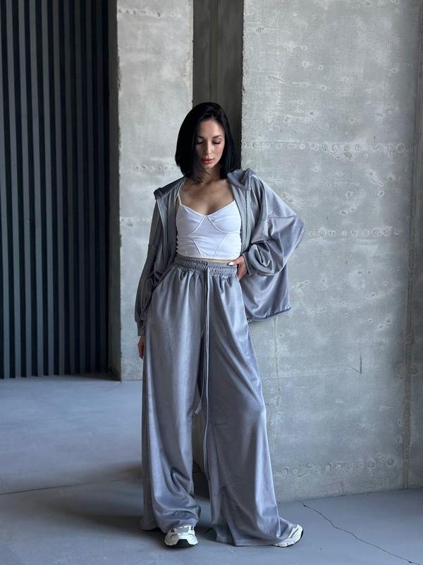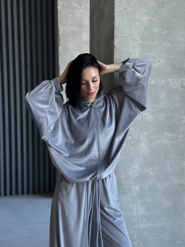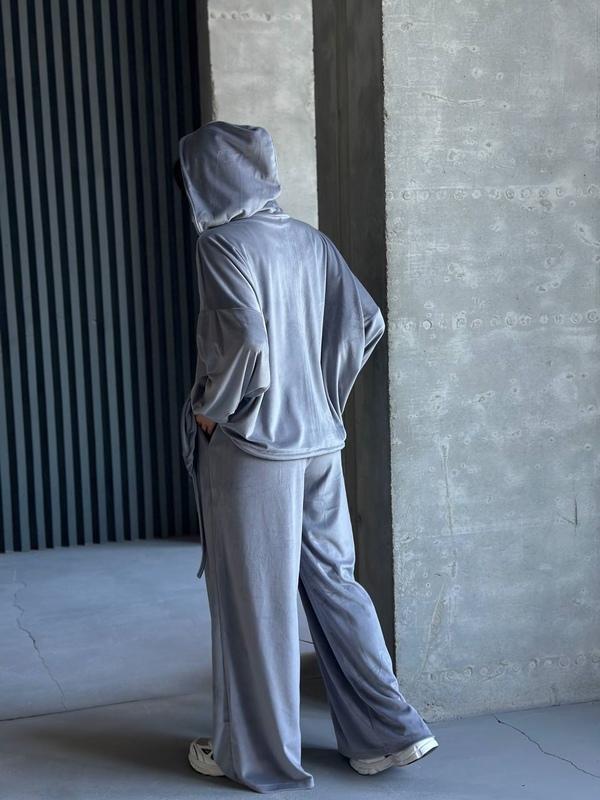 🔥Велюровий костюм з широкими брюками. Толстовка прямого вільного крою з довгими рукавами та вільною манжеткою на горловині.