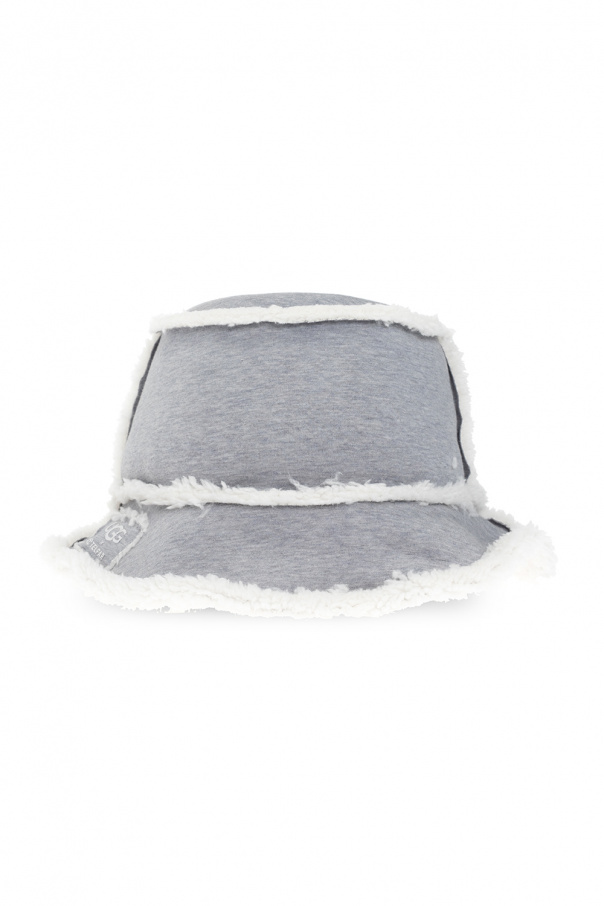 Grey bucket hat from UGG x Telfar. Made of cotton, this garment features a logo pattern and fleece trims.