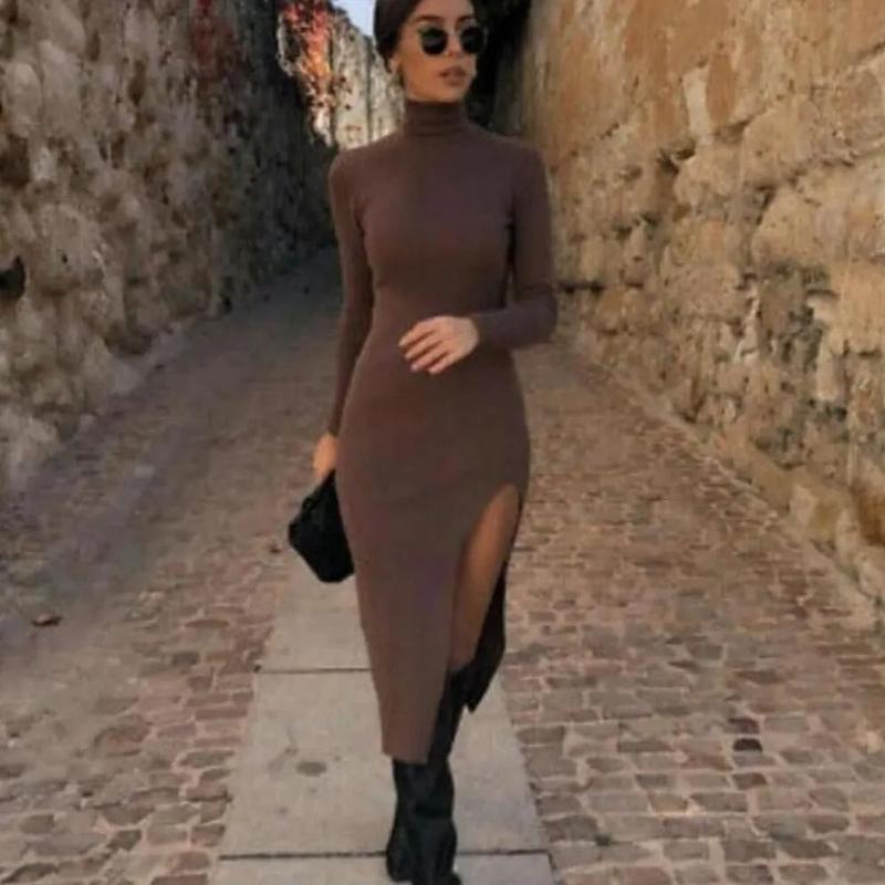 ▫️1190 грнОчень красивое трикотажное платье с воротником гольф и шикарным разрезом на ножке, подойдет любой девушке, отлично подчеркнет талию, сделав фигуру более изящной.