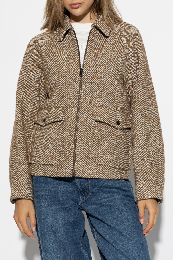 Introducing the exclusive Patterned Jacket from the renowned Woolrich collection, a quintessential blend of classic elegance and functional design. This jacket, with its timeless herringbone pattern, exudes sophistication and grace, perfect for both casual and more formal settings. Crafted from a premium blend of materials, including acrylic, wool, polyester, and cotton, this jacket ensures durability and warmth, making it an ideal choice for cooler days. The interior is lined with acetate and polyester, providing added comfort and a luxurious feel. This piece features a classic straight cut with a central zipper, a distinguished collar, and two front pockets secured with buttons. The adjustable cuffs and elasticated hem offer a tailored fit, shielding you from the wind and enhancing overall comfort. In a rich brown hue with contrasting white accents, this jacket stands out as a versatile addition to any wardrobe, embodying the timeless craftsmanship Woolrich is celebrated for. The brand, established in 1830 by John Rich, is synonymous with resilient, stylish outerwear crafted using traditional American techniques. Why Choose This Product? Elegant herringbone pattern that adds a touch of timeless sophistication. High-quality material blend for durability and warmth. Functional design with adjustable cuffs and elasticated hem for a perfect fit. Renowned Woolrich craftsmanship ensuring superior quality and style.