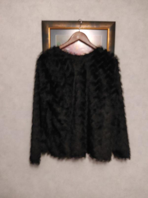 жакет з бахромою без застібок, состояие дуже гарне секонд Люкс, на бирці 10 розмір, сідає на 8-10, орієнтуйтеся на заміри без розтяжки тканини,. бахрома розташована зигзагом (є спідниця з такою ж бахромою але рівним розташуванням перше фото даної моделі з інтернету)для демонстрації посадки залежить від параметрів і зростання, на відміну від фото довжина бахроми, коротше. тканина добре тягнеться. лінія Divided від H&M заміри довжина 59 довжина рукава 57( 58,5 з бахромою,) Ширина по плечах 45 ширина по спинці від пахви до пахви 54( ПОГ), застібок спереду немає ПОТ 54( по спинці) ширина внизу ззаду 52 примірялося на 8-10 , сідає добре. ньюанс - зацепочки від плічок всередині, при носінні непомітно.