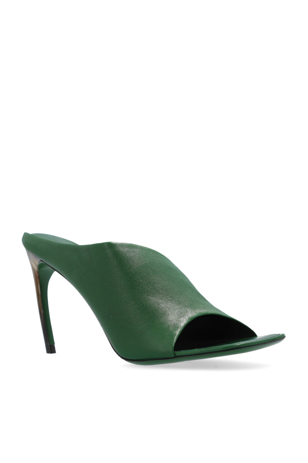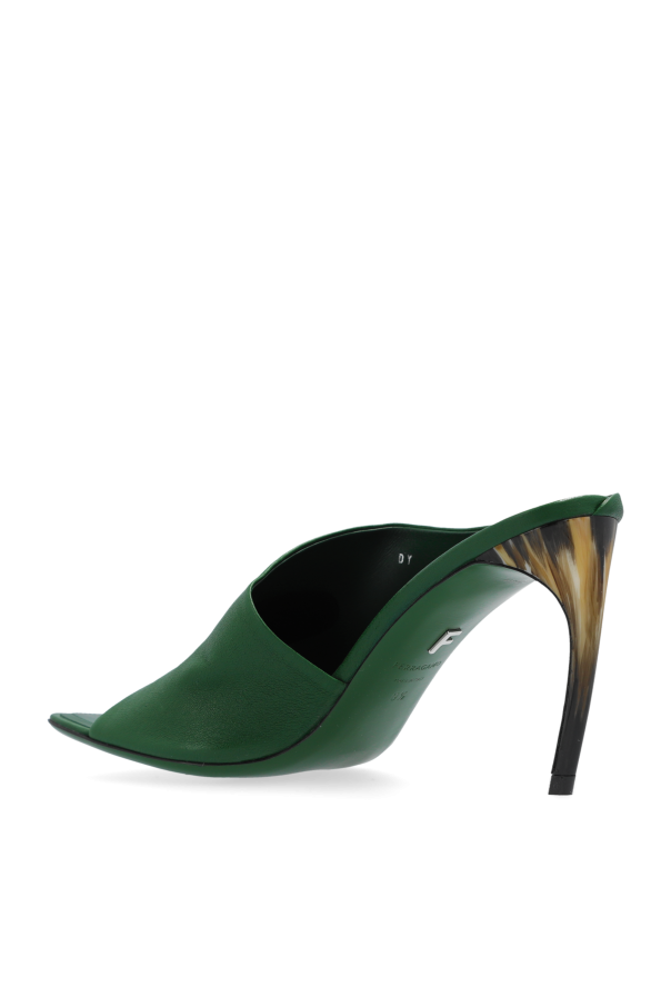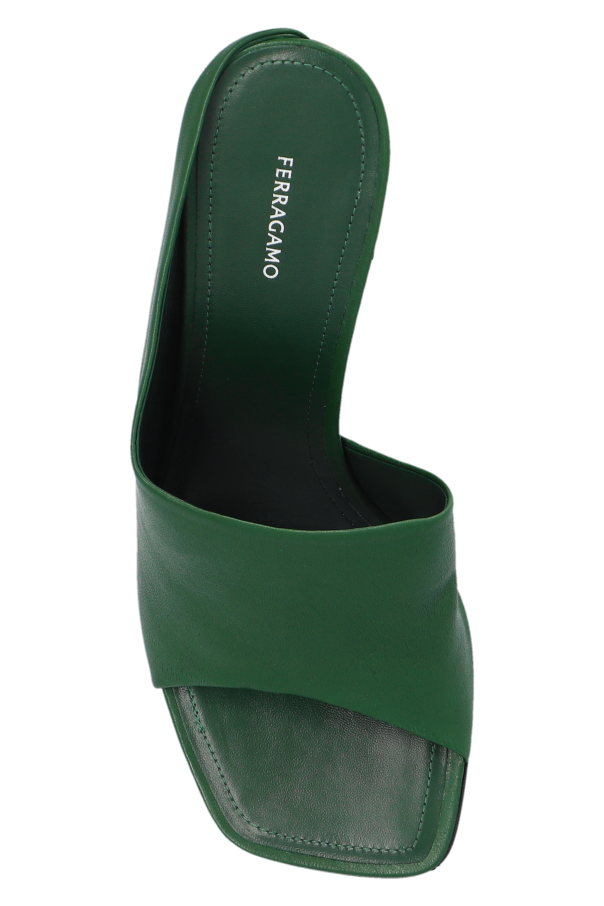 Introducing the exquisite ‘Nymphe’ Heeled Slippers by FERRAGAMO, a testament to minimalist elegance and sophisticated design. Crafted with meticulous attention to detail, these slippers boast a deep green hue, exuding an aura of mystery and allure. The singular wide strap gracefully enveloping the midfoot, paired with the distinctive round toe cleavage, creates a silhouette of understated chic. The heels of the ‘Nymphe’ are a marvel of craftsmanship, with their slender shape visually elongating the legs. Their unique finish, reminiscent of flames or a gradient of shades, adds an element of elegance and individuality. The interior side of the sole proudly displays the designer's name, FERRAGAMO, a subtle but significant mark of luxury and authenticity. Made from smooth, matte leather for both the exterior and interior, along with a leather sole, these slippers exude high-quality construction and a luxuriant feel. Whether paired with casual jeans and a crisp white shirt or more formal attire, the ‘Nymphe’ slippers are a versatile addition to any wardrobe, enhancing every ensemble with their distinctive charm. Why Purchase the ‘Nymphe’ Heeled Slippers? Elegance: Deep green color and minimalist design offer a sophisticated touch. Unique Heel Design: Slender shape and special finish provide elegance and uniqueness. Luxury: High-quality matte leather and designer name imprint signify luxury. Versatility: Perfect for both casual and formal settings, enhancing any outfit. Comfort: Standard foot width and quality materials ensure comfort and durability.