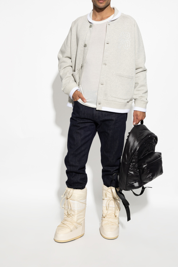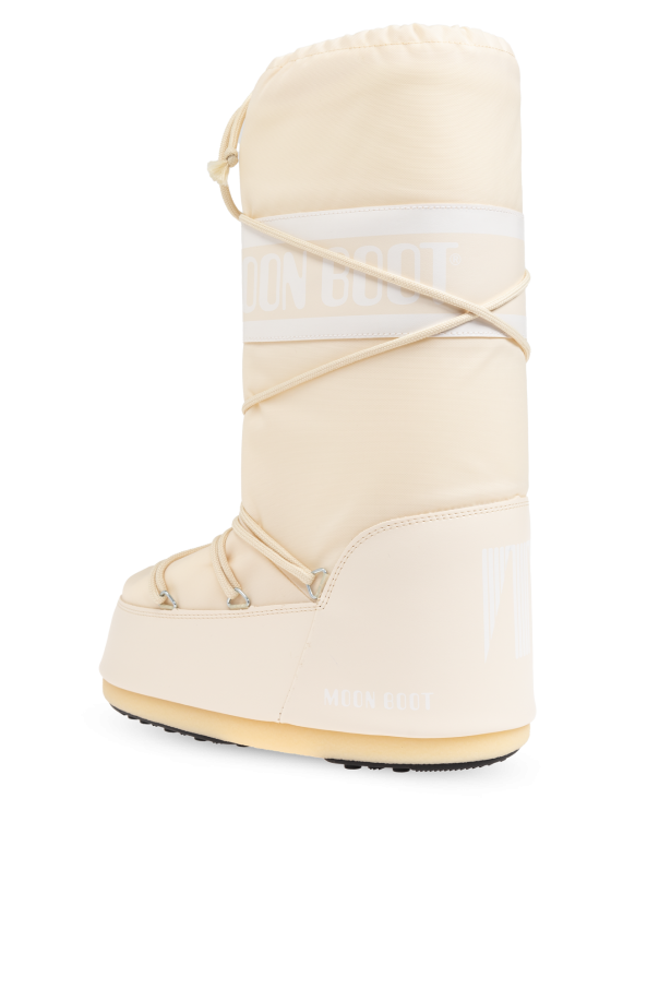 Introducing the exclusive Icon Nylon Snow Boots for men, a distinguished addition to your winter wardrobe. These boots, designed by the renowned Moon Boot, exemplify a blend of modern aesthetics and high-end functionality. The Icon Nylon boots feature a distinctive high-top design that extends above the ankle, providing enhanced protection against snow and cold. With a wide strap emblazoned with "MOON BOOT" and unique asymmetrical lacing that wraps around the entire upper, these boots are as stylish as they are practical. Crafted from lightweight, moisture-resistant nylon, coupled with durable synthetic elements on the lower part, these boots are built to withstand harsh winter conditions. The cream-colored exterior is complemented by a bold white "MOON BOOT" logo on the side, ensuring they stand out in any winter setting. The rubber sole guarantees excellent traction on snow and ice, while the high shaft and secure lacing offer superior comfort and stability. These boots seamlessly merge minimalist design with practical features, making them a must-have for the discerning gentleman. Why Choose This Product? High-top design for maximum snow and cold protection Lightweight and moisture-resistant nylon construction Durable synthetic elements for enhanced longevity Bold "MOON BOOT" branding for a unique style statement Rubber sole for superior grip on slippery surfaces Comfortable and stable fit with asymmetrical lacing