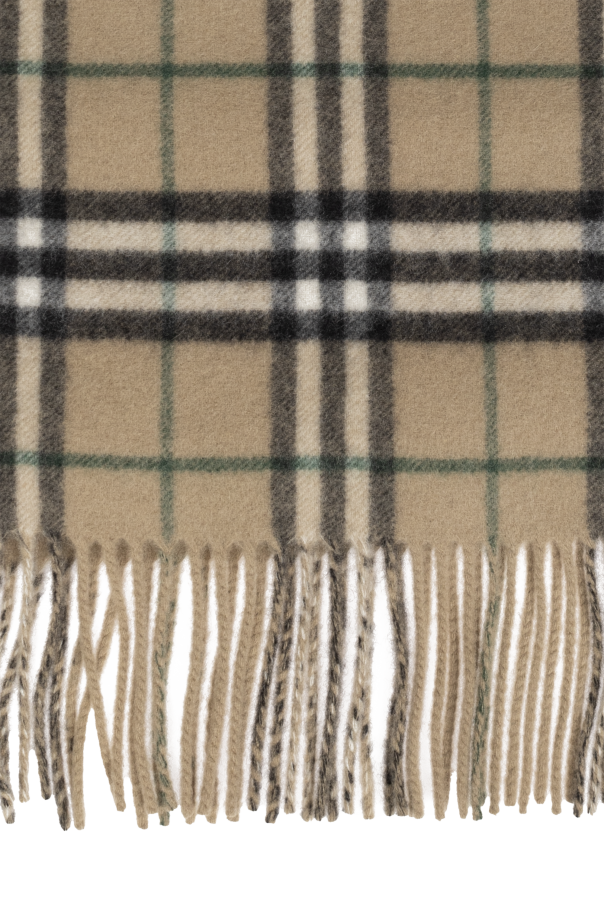 Introducing the epitome of sophistication and luxury: the Cashmere Scarf by Burberry. This exquisite accessory, adorned with the brand's iconic check pattern, harmoniously blends beige, black, white, and green hues to create a timeless and elegant piece. Crafted from the finest cashmere, this scarf offers unparalleled softness and warmth, ensuring both comfort and style. The meticulously designed fringes at the ends add a touch of refined elegance, showcasing the meticulous craftsmanship synonymous with Burberry. Perfect for both formal and casual ensembles, this versatile scarf is an essential addition to any discerning wardrobe. Elevate your style with this luxurious accessory that seamlessly marries classic design with unmatched quality. Why Choose This Product? Classic check pattern with a sophisticated color palette Made from 100% premium cashmere for ultimate softness and durability Elegant fringes enhance the scarf's refined look Ideal for both elegant and casual outfits Renowned craftsmanship by the iconic fashion house, Burberry