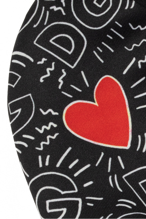 Black patterned mask with a logo in white and red from Dolce & Gabbana.