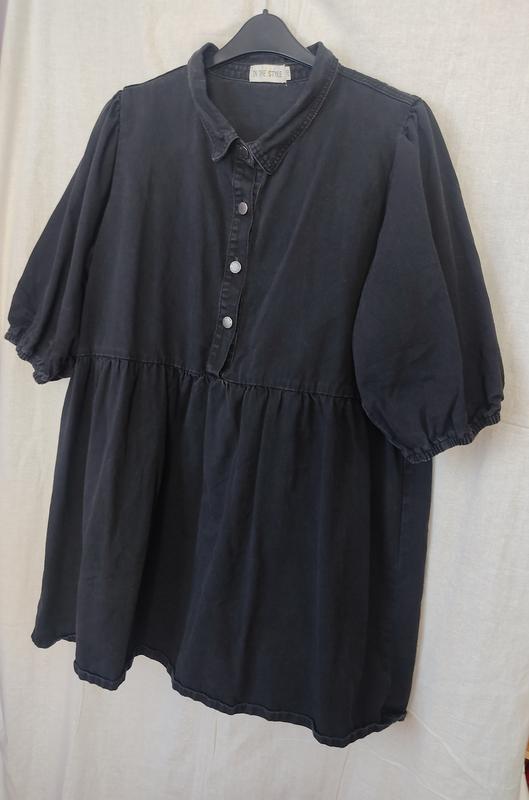 Молодежная джинсовая туника цвета асфальт, с лёгкими потертостями; рукав укороченный