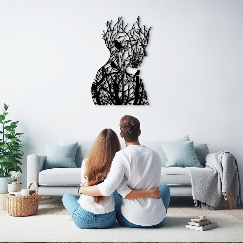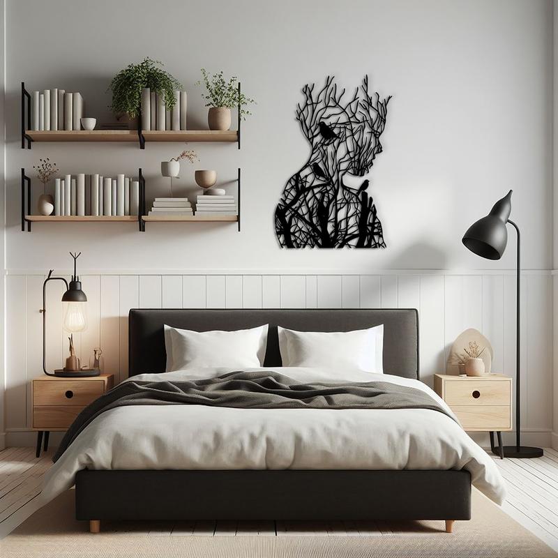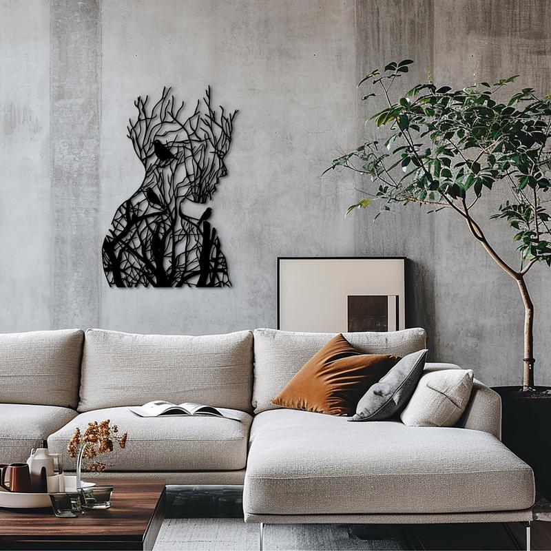 Деревянная картина на стену, декор для комнаты "Кружева девушка с птицами"