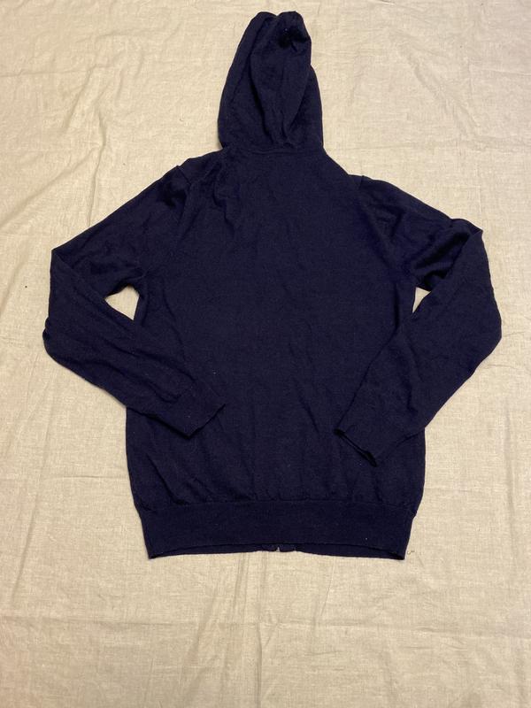 Темно синяя худи из шерсти. Состояние очень красивое. Размер С-М. Плечи 39, грудь 49 и рукав 66. Смотрите еще мое объявления.