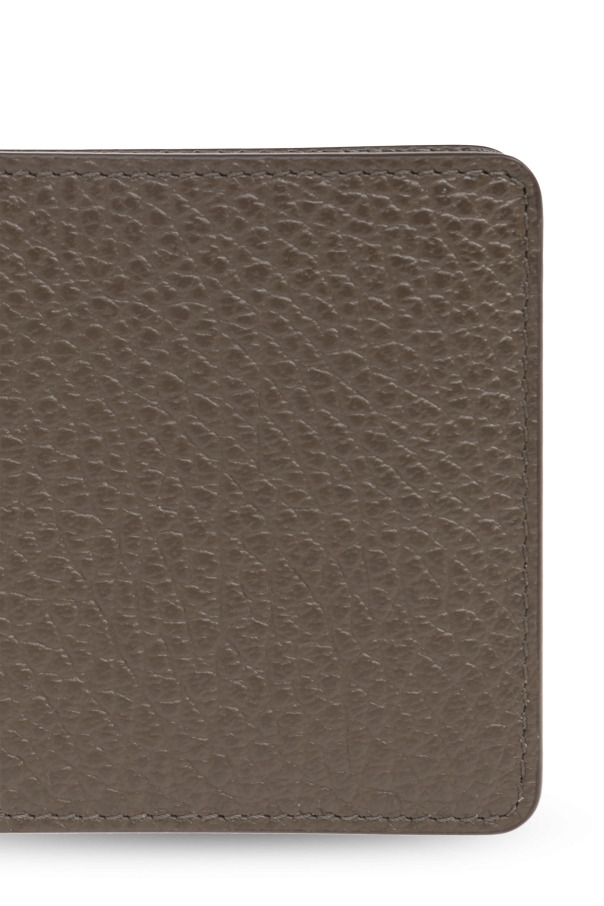 Introducing the Maison Margiela Leather Wallet, a testament to minimalist elegance and superior craftsmanship. Crafted from 100% calf leather, this exquisite accessory boasts a sleek, rectangular silhouette with softly rounded corners, embodying the essence of refined sophistication. The wallet's exterior reveals a subtle grain texture that hints at its high-quality material, complemented by the iconic white stitching that adds a touch of exclusivity. Upon opening, the interior unfolds to reveal a meticulously organized space, featuring two bill compartments, two slip pockets, and eight card slots, ensuring all your essentials are stored with elegance. The precise edges and exceptional finishing underscore the wallet's luxurious nature, making it a distinguished choice for the discerning individual. Its understated grey hue, enriched with brown tones, seamlessly blends with any ensemble, making it a versatile addition to your accessory collection. The presence of the designer's name or logo subtly placed within, further accentuates its authenticity and prestigious origin. Why Purchase This Wallet? Handcrafted from premium calf leather for enduring quality. Elegant design with distinctive white stitching for a touch of uniqueness. Practical and stylish, with ample space for cards and cash. Emblematic of Maison Margiela's minimalist aesthetic and luxury.