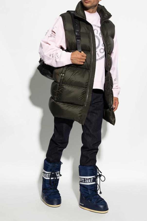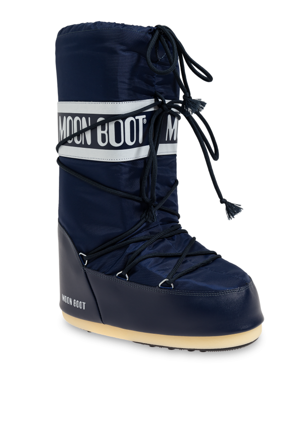 Introducing the Icon Nylon snow boots from the exclusive collection by renowned designer Moon Boot. These boots epitomize elegance and functionality, making them a quintessential addition to your winter wardrobe. With a classic, high-top design that extends above the ankle, these boots provide exceptional protection against cold and snow. The distinctive lacing runs the full length of the boot, serving both practical and decorative purposes. Crafted from premium synthetic material, the exterior is both waterproof and resistant to low temperatures, ensuring durability and comfort. The thick rubber sole offers excellent thermal insulation and traction on slippery surfaces. The dominant navy color is complemented by a wide white strap featuring the iconic black "MOON BOOT" lettering, a signature element of this model. The logo is also prominently displayed on the white strap and the side of the sole, underscoring the product's exclusivity. Additional reinforcements around the toes and heels enhance the durability of these snow boots, while the lace tips are adorned with small tassels, adding a touch of elegance. Why Choose This Product? High-quality synthetic material for superior waterproofing and cold resistance. Thick rubber sole for excellent insulation and grip. Iconic design with distinctive "MOON BOOT" branding. Elegant lacing with decorative tassels. Durable reinforcements in key areas.