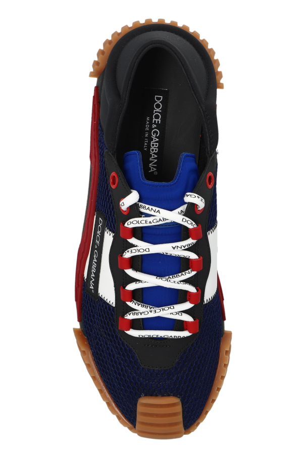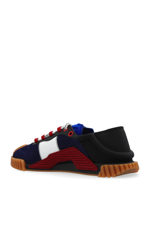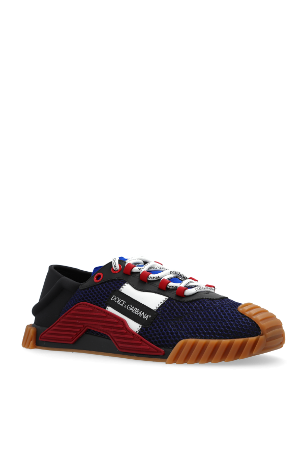 Introducing the exclusive NS1 Sneakers by the renowned designer Dolce & Gabbana. These low-top sneakers effortlessly blend sporty functionality with a sophisticated design, making them a versatile addition to any wardrobe. Crafted with meticulous attention to detail, the NS1 Sneakers showcase a multicolor palette, predominantly featuring shades of navy, red, white, and black. The breathable mesh upper ensures optimal air circulation, while the ribbed rubber sole provides superior grip and durability. The sneakers boast a distinctive aesthetic with red and white rubberized side elements and the iconic Dolce & Gabbana logo emblazoned on the sides. The white laces, accented with red and blue highlights and the repeating "Dolce & Gabbana" script, add a touch of refined elegance. Inside, a branded insole enhances comfort, ensuring that these sneakers are as functional as they are fashionable. Why Choose These Sneakers? Exquisite design by Dolce & Gabbana, synonymous with luxury and elegance. Multicolor scheme perfect for versatile styling. Breathable mesh upper for superior comfort. Durable, ribbed rubber sole for enhanced traction. Elegant details, including branded laces and logo accents.