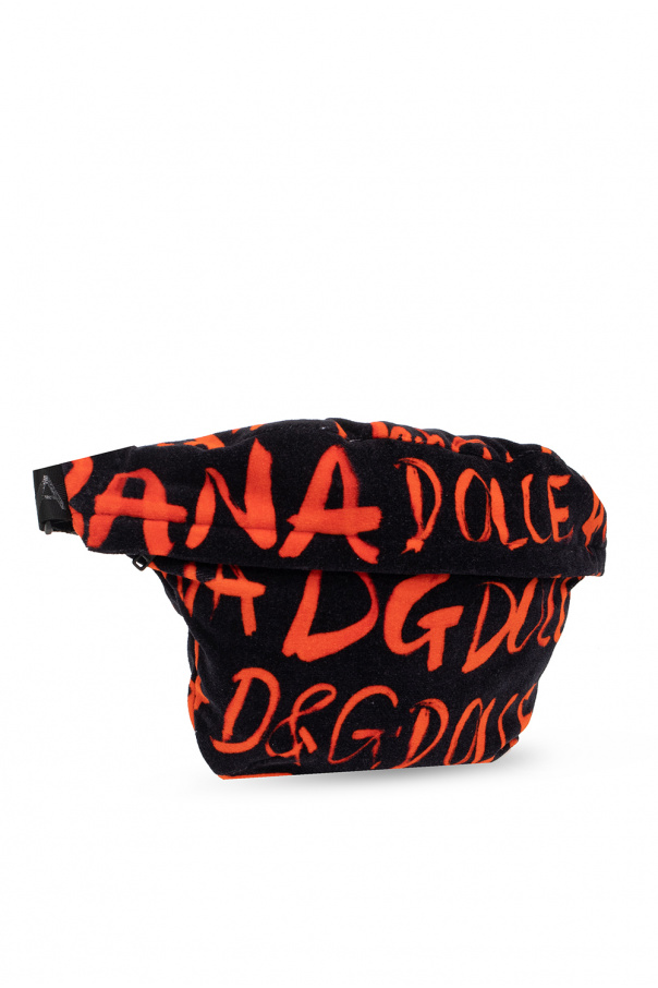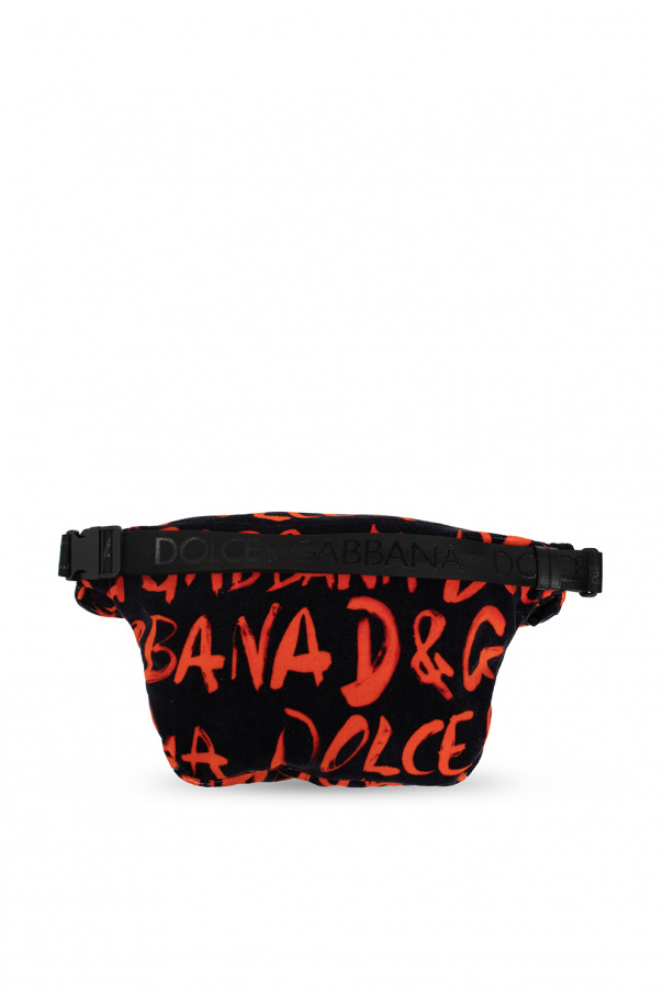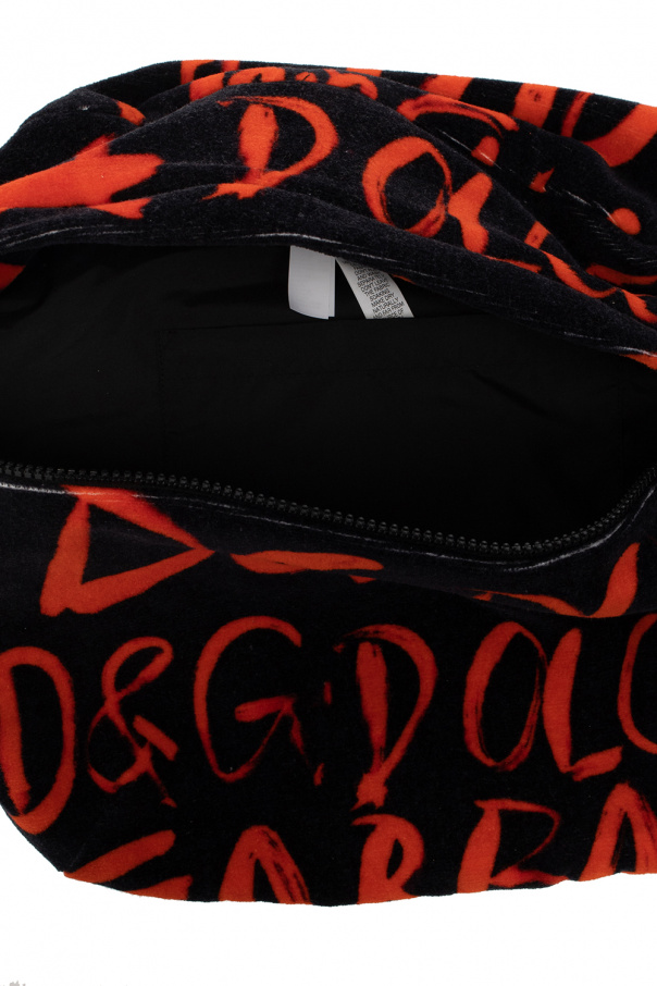 Black and red set including a beach towel and belt bag from Dolce & Gabbana. Made of cotton, it is decorated with a logo pattern. The belt bag features a zip fastening, adjustable fabric strap with a raised logo and one internal compartment with one slip pocket.