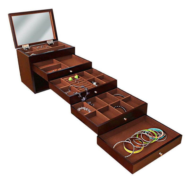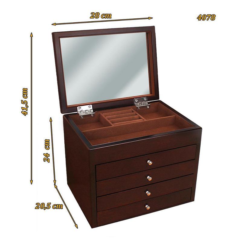 Шкатулка ювелирных изделий разделена на 5 видвижных ящиков , что облегчает