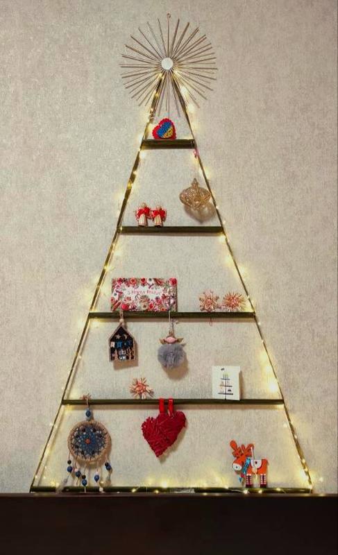 Ёлка декоративная на стену изготовлена из легкого и прочного материала ( бамбук, искусственная кожа).