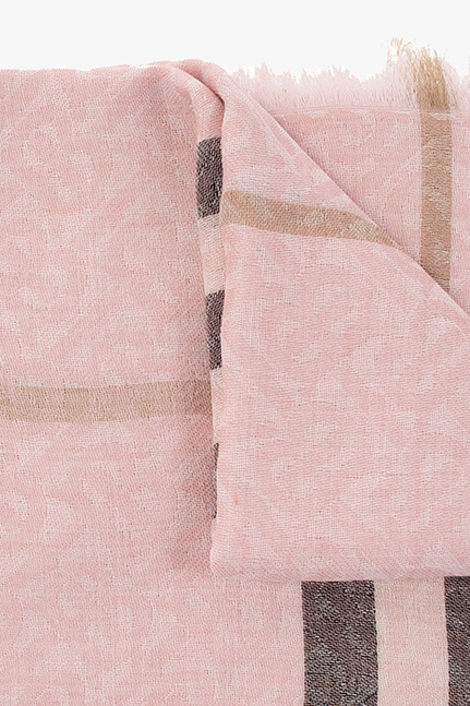Pink, black and beige scarf from Burberry. Crafted from a wool and silk blend, this design features the label’s signature check, monogram and raw cut edges.
