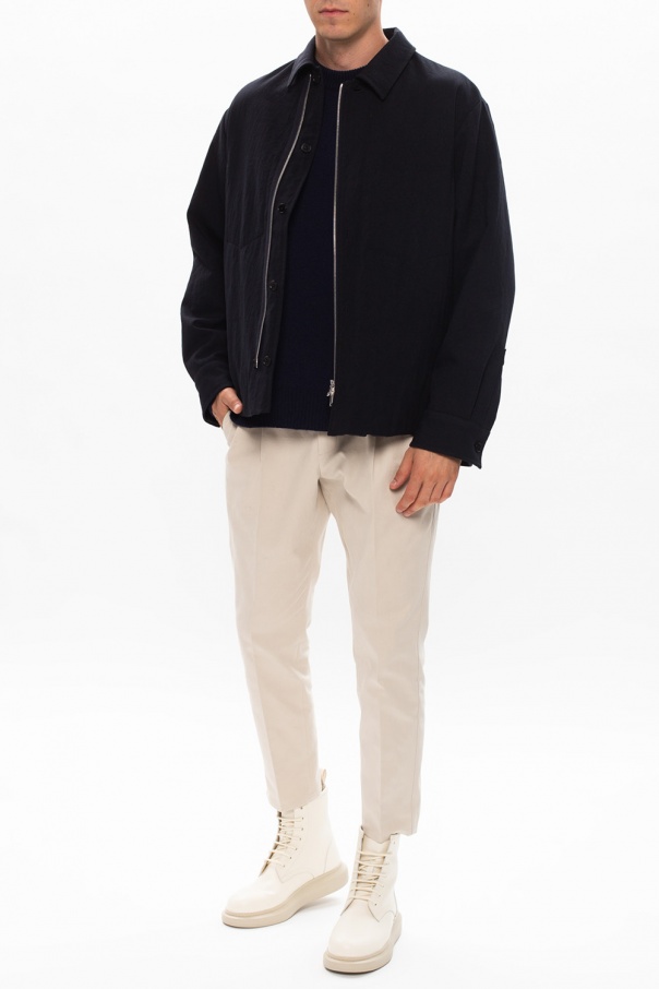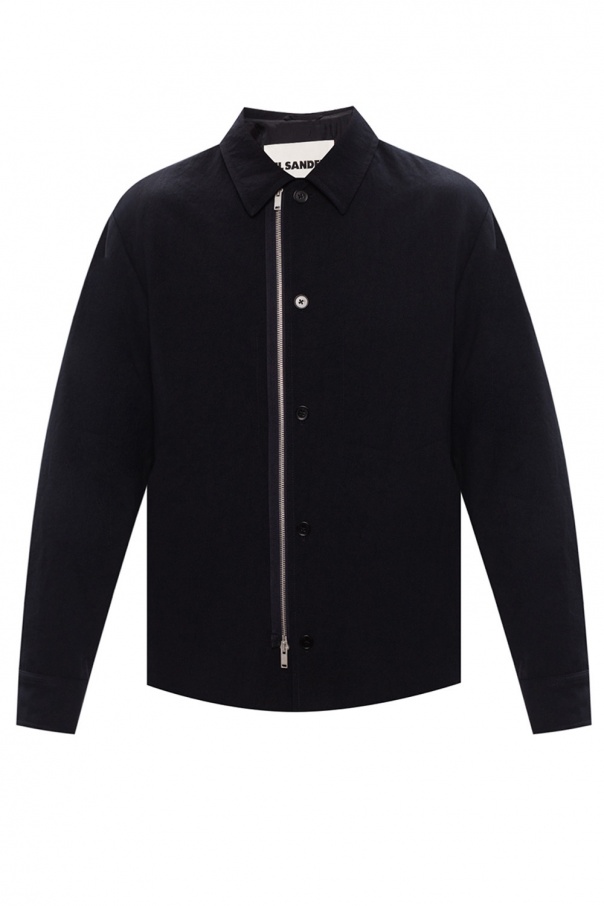 Black jacket from Jil Sander. Fastened with a zip and buttons, this garment features two front pockets and long sleeves with button cuffs.