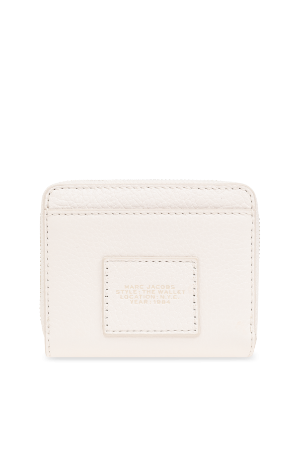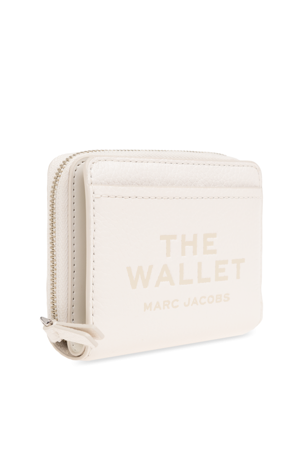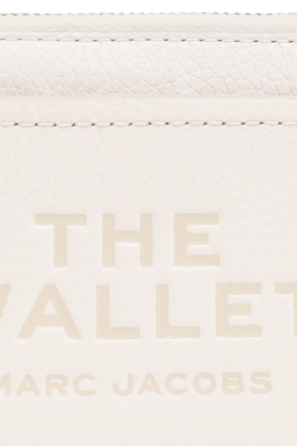 White wallet from Marc Jacobs. Made from grained leather, this item features a snap closure, embossed logo, patch, front and back pocket as well as one zipped coin pocket, one bill compartment, two slip pockets and four card slots inside.