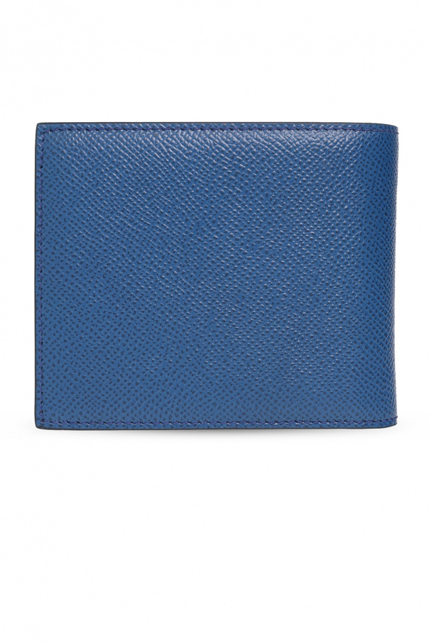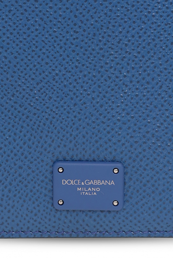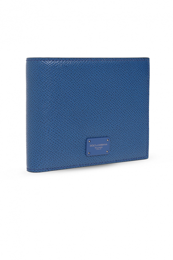 Blue wallet from Dolce & Gabbana. Made of calf leather, this design showcases a gold-tone logo plaque and six card slots, two slip pockets and a bill compartment inside.