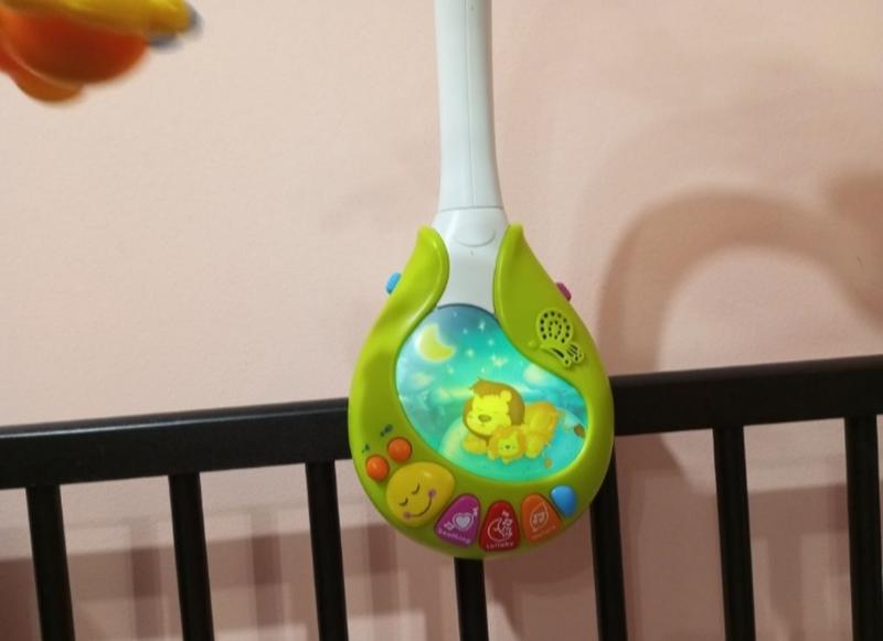 Детский мобиль на кроватку. Музыкальный. Вращается по кругу. Поощряет к наблюдениям и игре, убаюкивает. Имеет несколько режимов и цветов.