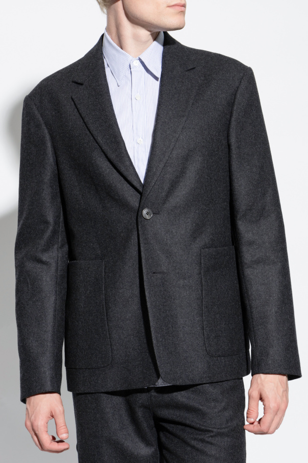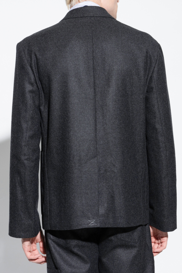 Introducing the Open Lapel Blazer from the exclusive collection of the renowned designer, Dries Van Noten. This exquisite blazer is a testament to timeless elegance and modern sophistication. Crafted from premium-quality wool, the blazer features a classic, straight cut with open lapels and regular sleeves. The front closure comprises two matching buttons, enhancing its seamless design. The blazer's solid gray color exudes a subtle elegance, making it a versatile addition to any wardrobe. The meticulous attention to detail is evident in the two large, patch pockets at the front, which add a contemporary touch. The absence of visible branding underscores the understated luxury of this piece. Inside, a label bearing the designer's name adorns the inner collar, a discreet nod to its distinguished heritage. Pair this blazer with a white shirt featuring thin blue stripes, as showcased in the images, to emphasize its formal appeal. The close-up shots of the collar and stitching highlight the precision craftsmanship and dedication to quality that define this garment. Why Choose This Product? Designed by the legendary Dries Van Noten, a pioneer in avant-garde fashion. Constructed from 100% high-quality wool for comfort and durability. Classic, timeless design with modern details. Versatile gray color suitable for various formal occasions. Exquisite craftsmanship and attention to detail.
