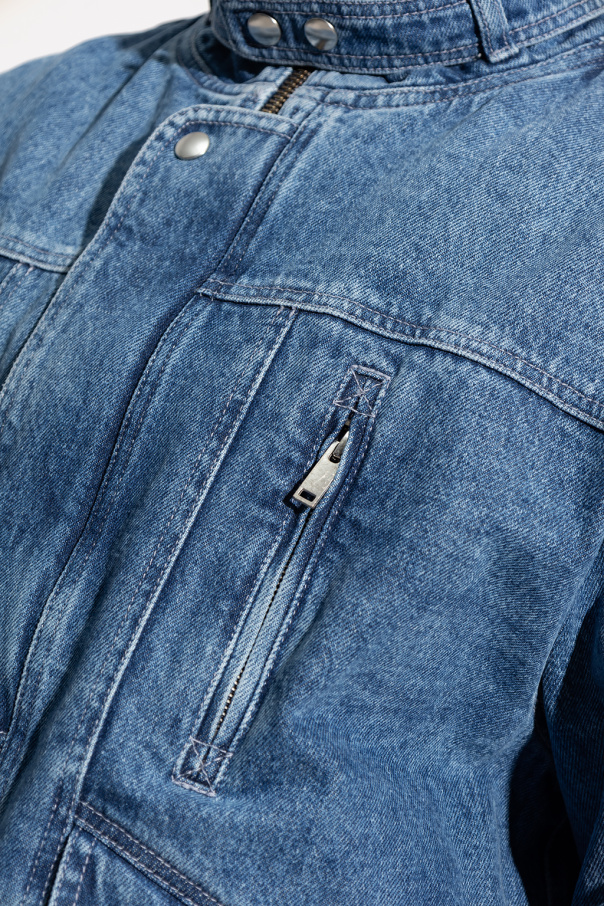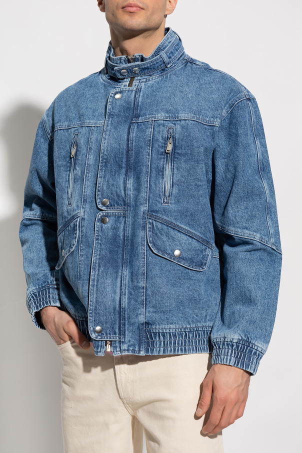 Blue ‘Jakito’ denim jacket from MARANT. Crafted from cotton, this style fastens with a zipper and snaps and features a standing collar with a snap-fastened strap, two zip pockets and two flapped pockets with snaps on the front and elasticized trims on the bottom hem and cuffs.