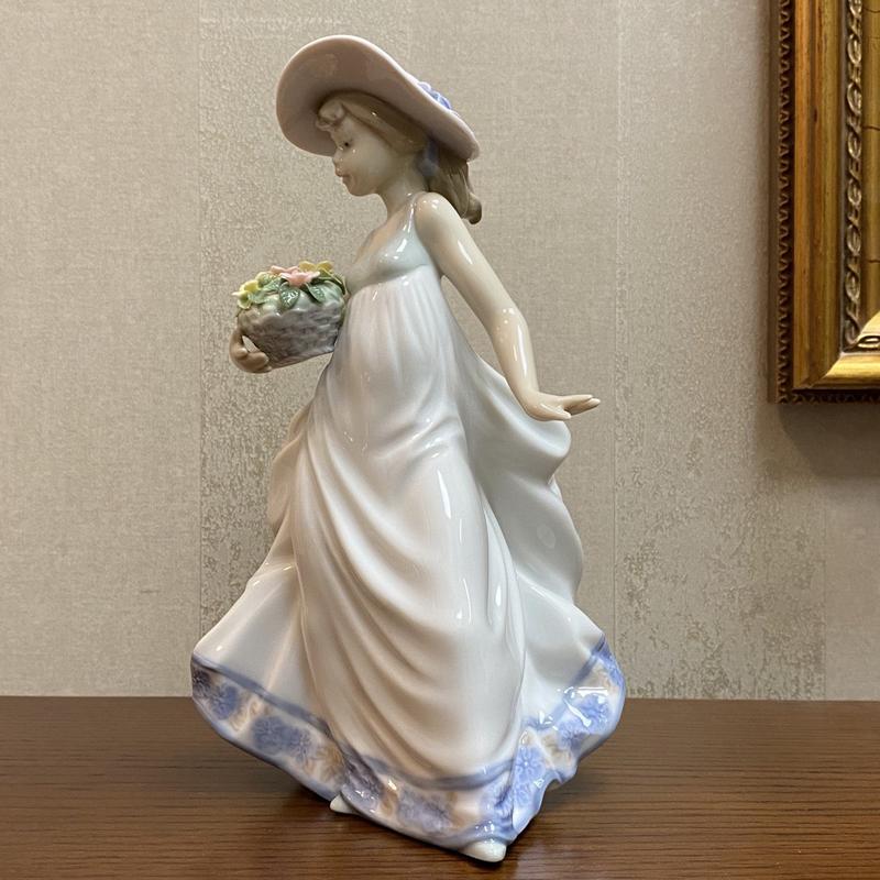 Фарфоровая статуэтка Lladro, № 5790, оригинальное название «Carefree (дословно – Беззаботная)». В испанском варианте – «Con Flores y Brisa (С цветами и легким ветерком)».