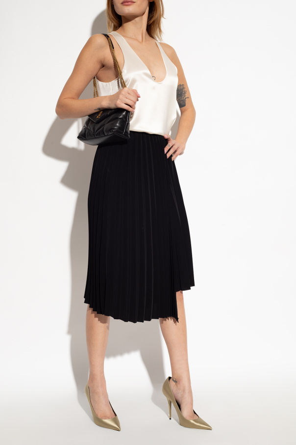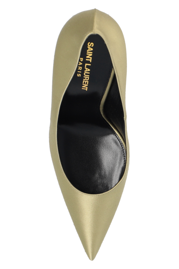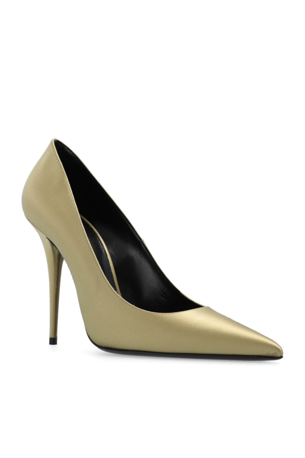 Gold-tone ‘Instinct’ stiletto pumps from Saint Laurent. This pointed toe pair is set on a black leather sole.