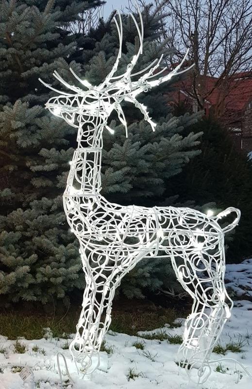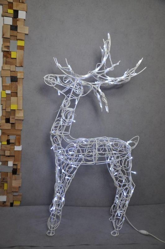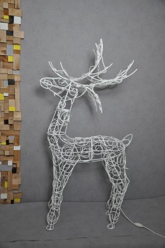 Рождественская гирлянда в виде объемного оленя белого цвета. Выглядит красиво,