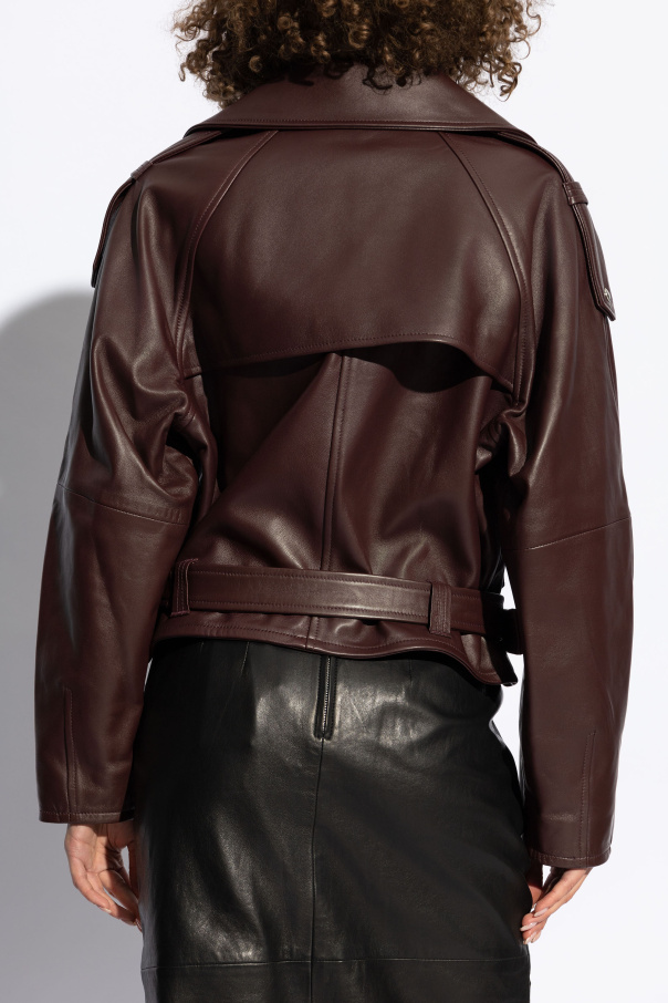 Introducing the Yuria Jacket, a masterpiece of craftsmanship and style by the renowned designer Iro. This exquisite piece, rendered in a rich burgundy hue, is a testament to elegance and versatility. Crafted from 100% lambskin leather, its outer layer boasts a subtle sheen that captures the eye, while the interior is lined with 100% viscose for unparalleled comfort. The Yuria Jacket features a distinct, short silhouette with wide lapels and a collar that can be stylishly worn up or down, adapting to your style needs. An asymmetric zip closure lends the jacket a hint of rock'n'roll flair, while the broad belt with a buckle accentuates the waist, adding structure to the design. Large pockets not only serve a functional purpose but also contribute to the jacket's aesthetic appeal. The sleeves are designed with simplicity in mind, free of unnecessary embellishments, ensuring a sleek look. Visible seams traverse the garment, emphasizing its shape and construction - a signature detail of this design. The back remains unadorned, save for the belt detail, maintaining the jacket's clean and sophisticated profile. A closer inspection reveals meticulous stitching along the collar edges, showcasing a commitment to superior detail. Why Purchase the Yuria Jacket? Exclusive Design: A unique piece from Iro, blending luxury with edgy elements. High-Quality Materials: Crafted from the finest lambskin leather and lined with soft viscose. Versatile Style: The burgundy color and elegant cut make it a perfect match for various outfits and occasions. Attention to Detail: From the asymmetric zip to the detailed stitching, every element is finely crafted.