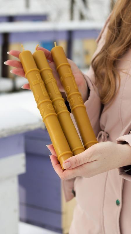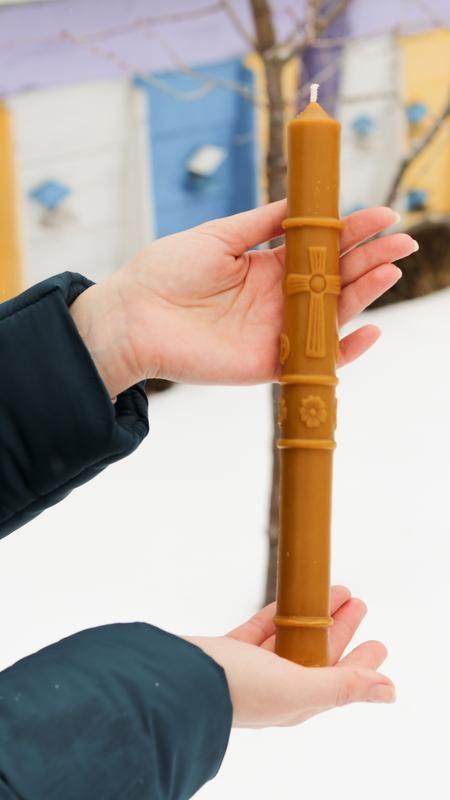 Свічка виготовлена з бджолиного воску з власної пасіки, екологічна, без домішок та шкідливих речовин.
