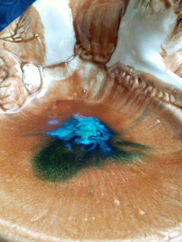 Пепель... ница отлита по форме, с любовью вручную облита карамельной глазурью слоями с ручной росписью эмалями (полива, майолика).