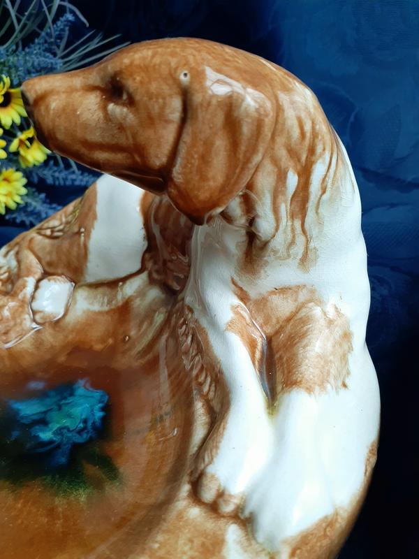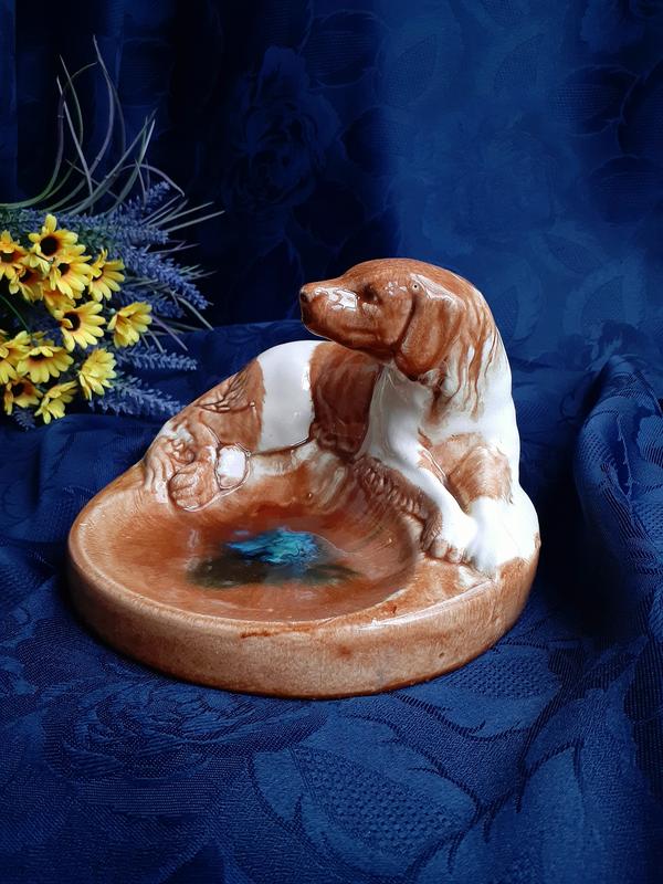 Несмотря на унитарное предназначение этой винтажной вещицы, перед Вами красивейшая статуэтка-пепель...ница "Охотничья собака", выполнена тонко и со вкусом на Константиновском керамзаводе в начале 1960-х годов!
