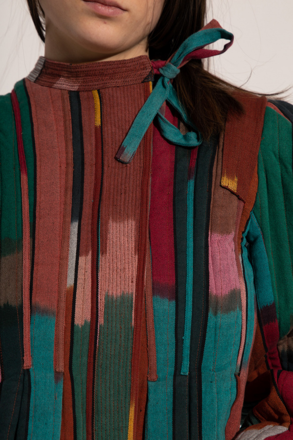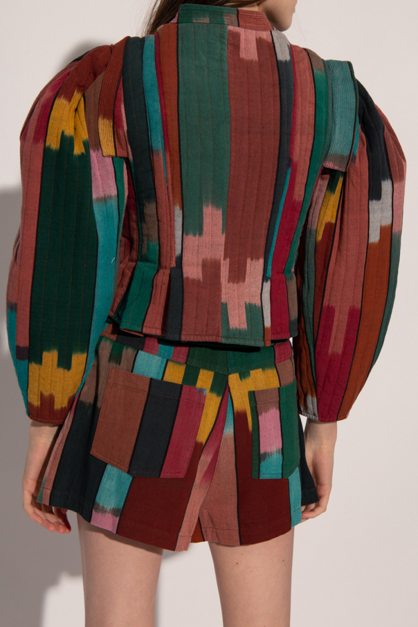 Colorful jacket 'Afia' by Ulla Johnson. Made in India from hand-woven cotton using century-old weaving techniques for eye-catching patterns in enhanced colors. Fastened with a zipper covered with a pleat. Neckline tied with drawstrings. Long, puff sleeves.