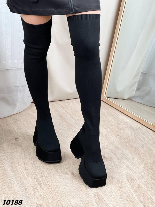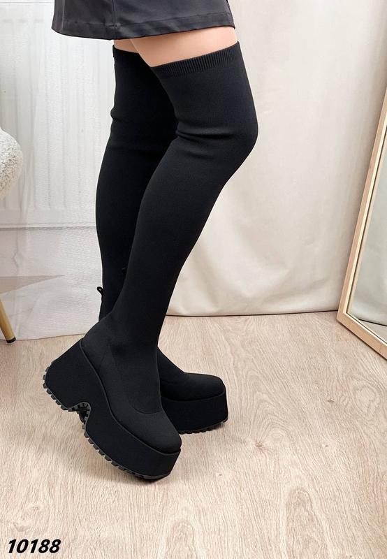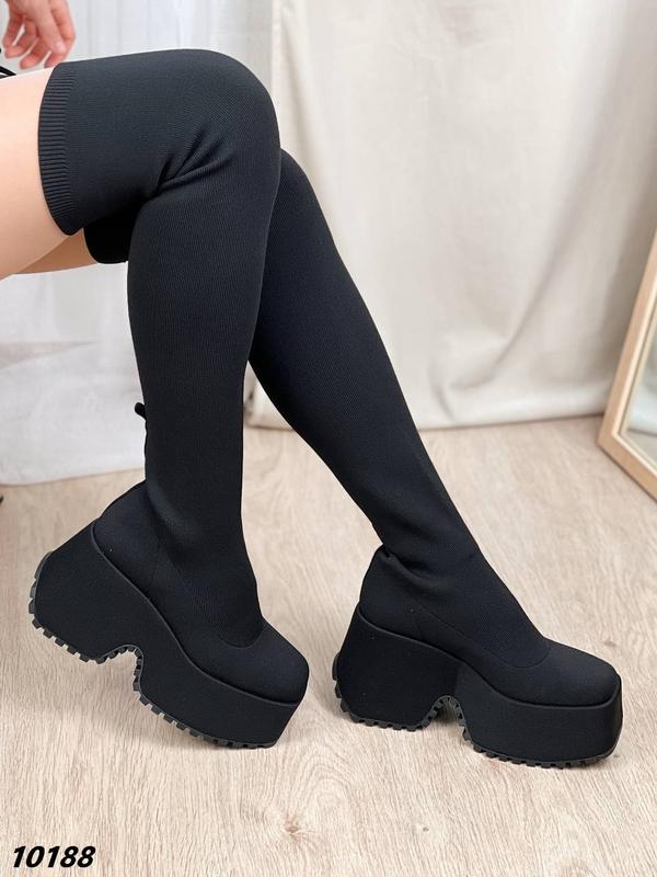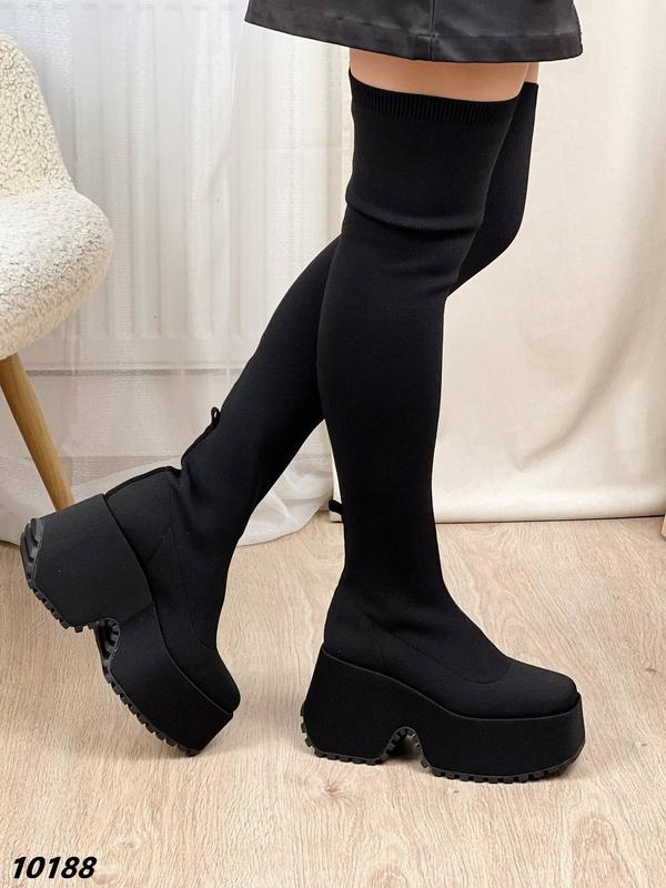 Ботфорты Материал стрейч текстиль Сезон деми Внутри флис до щиколотки Цвет черный Высота обуви от пятки 60 см Высота подошвы 10 см платформа 6 см🛒Размер по сетке:
