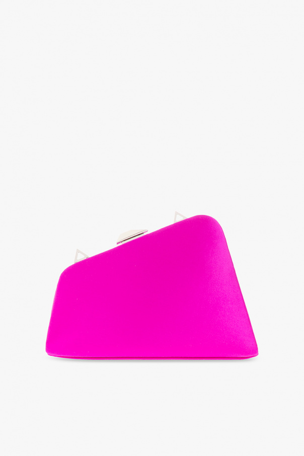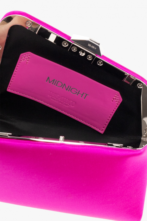 Neon pink ‘Midnight’ clutch from The Attico. Crafted from satin, this design features a snap closure, detachable shoulder strap, silver-tone metal hardware and one internal compartment with one card slot.